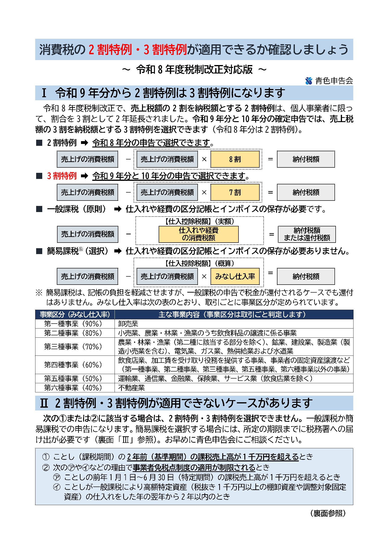 速報!!消費税の2割・3割特例が使えるか確認しましょう!